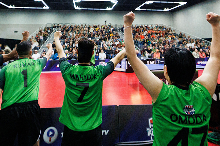 And on Sunday, they had an opportunity to come out of Portland with a perfect record, but it wouldn’t be easy. They’d have to face the Portland Paddlers, the top seed in the West Division. They’d have to face Nikhil Kumar, whom they sent to the Paddlers in the first trade in MLTT history. And that’s when the magic stopped for the Spinners. A late comeback in the Golden Game wasn’t enough. Kumar roared alongside the Portland crowd after scoring the Golden Game’s 21st point against Sareen, his old teammate.